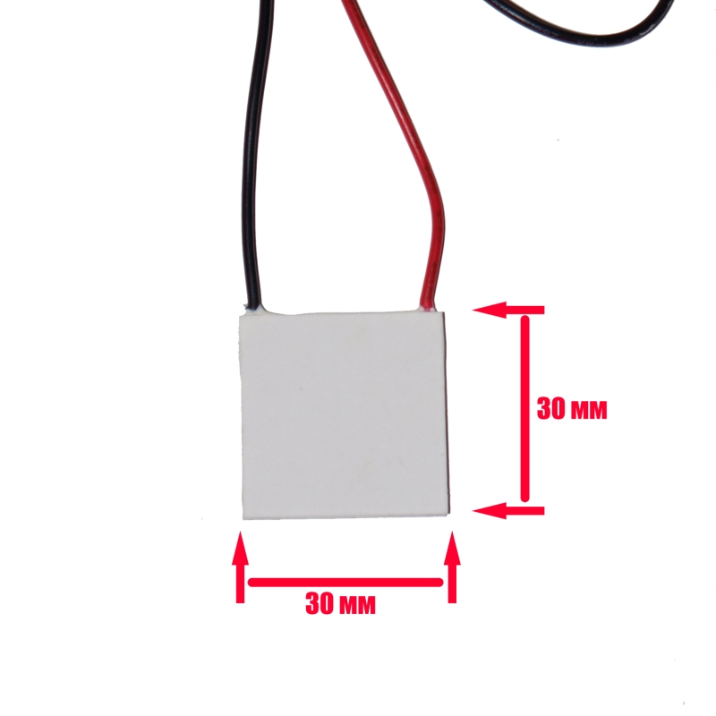 Керамический термоэлектрический преобразователь TES1-12704, действие которого основано на эффекте Пельтье (эффекте разности температур при протекании электрического тока). Такое устройство может применяться в портативном холодильнике, системе водяного охлаждения ПК, стабилизаторе температуры и.т.д. Обращаем Ваше внимание на необходимость хорошего охлаждения горячей стороны модуля. Модуль состоит из 127 термопар и рассчитан на рабочее напряжение 12В и силу тока в 4А. Разность температур между холодной и горячей стороной элемента находится в приделах 70ºС. Предельная охлаждающая мощность модуля равна 24 Вт. Также есть в наличие модули Пельтье другой мощности и другого размера.