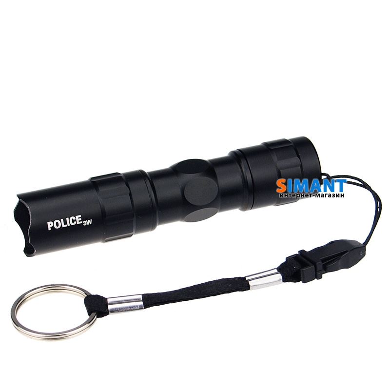 Фонарик POLICE - влагостойкий, не боится дождя и не глубоких погружений в воду. Корпус фонарика выполнен из алюминия и окрашен в черный цвет.
