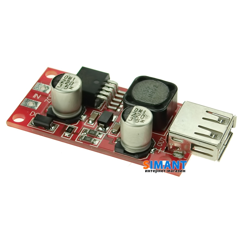 Понижающий преобразователь напряжения имеет выходной ток 5В, а допустимое входное напряжение - от 7 до 30В. Такой преобразователь можно использовать для питания различной электронной техники. Разъем преобразователя - USB. Все элементы устройства выполнены из качественных материалов и установлены на текстолитовой печатной плате, которая в свою очередь закреплена на охлаждающем радиаторе. Данный стабилизатор напряжения прост в эксплуатации, а также имеет высокий коэффициент полезного действия. Также Вы можете ознакомиться с другими понижающими и повышающими преобразователями.