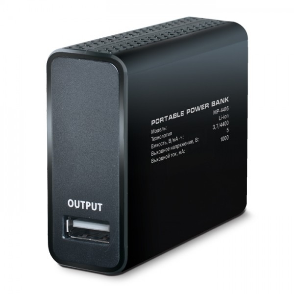 Портативная батарея MP-4416 имеет ёмкость 4000 mAh, а выходной ток – 1000 mAh. Этого вполне достаточно, чтобы зарядить большинство телефонов, смартфонов, планшетов и электронных книг.