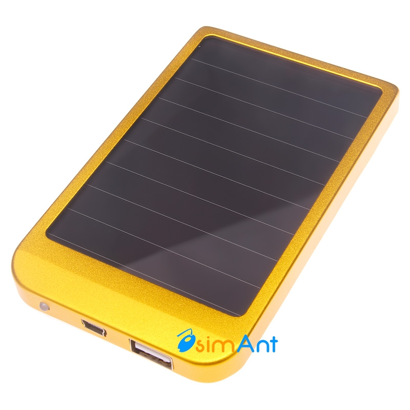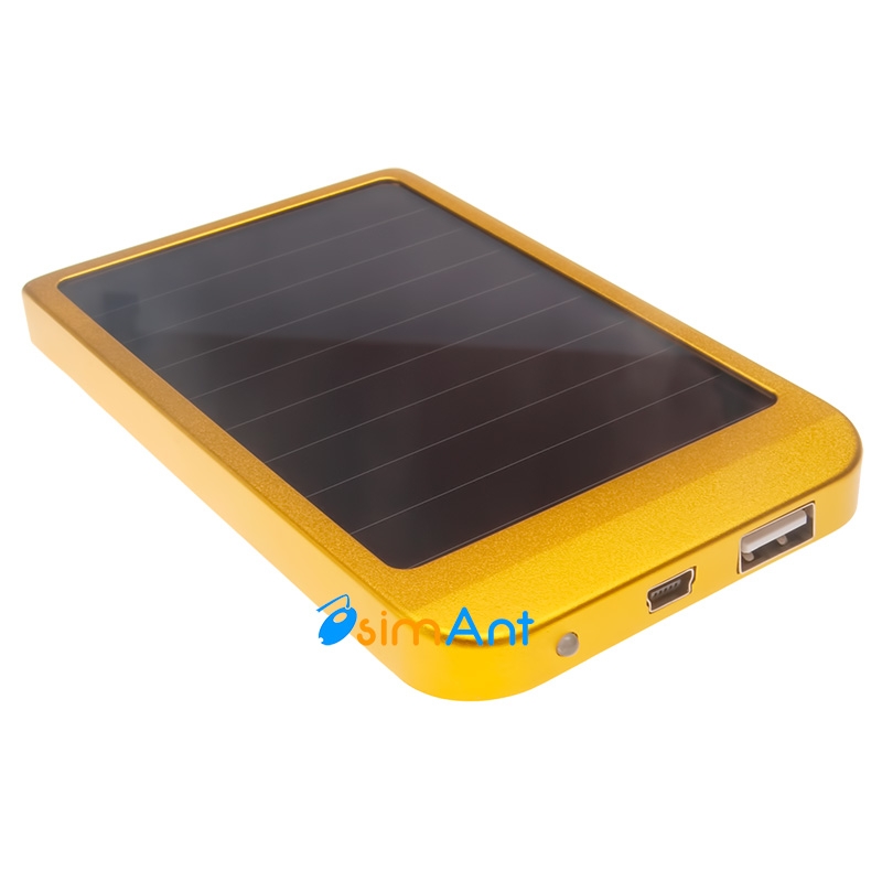 Зарядное устройство на солнечных батареях жёлтого цвета + дополнительный внешний аккумулятор. Устройство может работать автономно находясь в пределах любого источника света, чем ярче - тем лучше, накапливая энергиную во встроенный аккумулятор. Встроенный аккумулятор 2600 мАч, что намного больше, чем у любого мобильного телефона. Устройство имеет два разъема USB и Mini USB. Последний служит для быстрой зарядки сетевым адаптером. Внешний аккумулятор для телефона будет полезен тем, кто ходит в походы или много времени в пути, где не всегда доступна розетка.